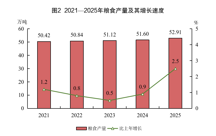 表2 2025年主要农产品产量及其增长速度